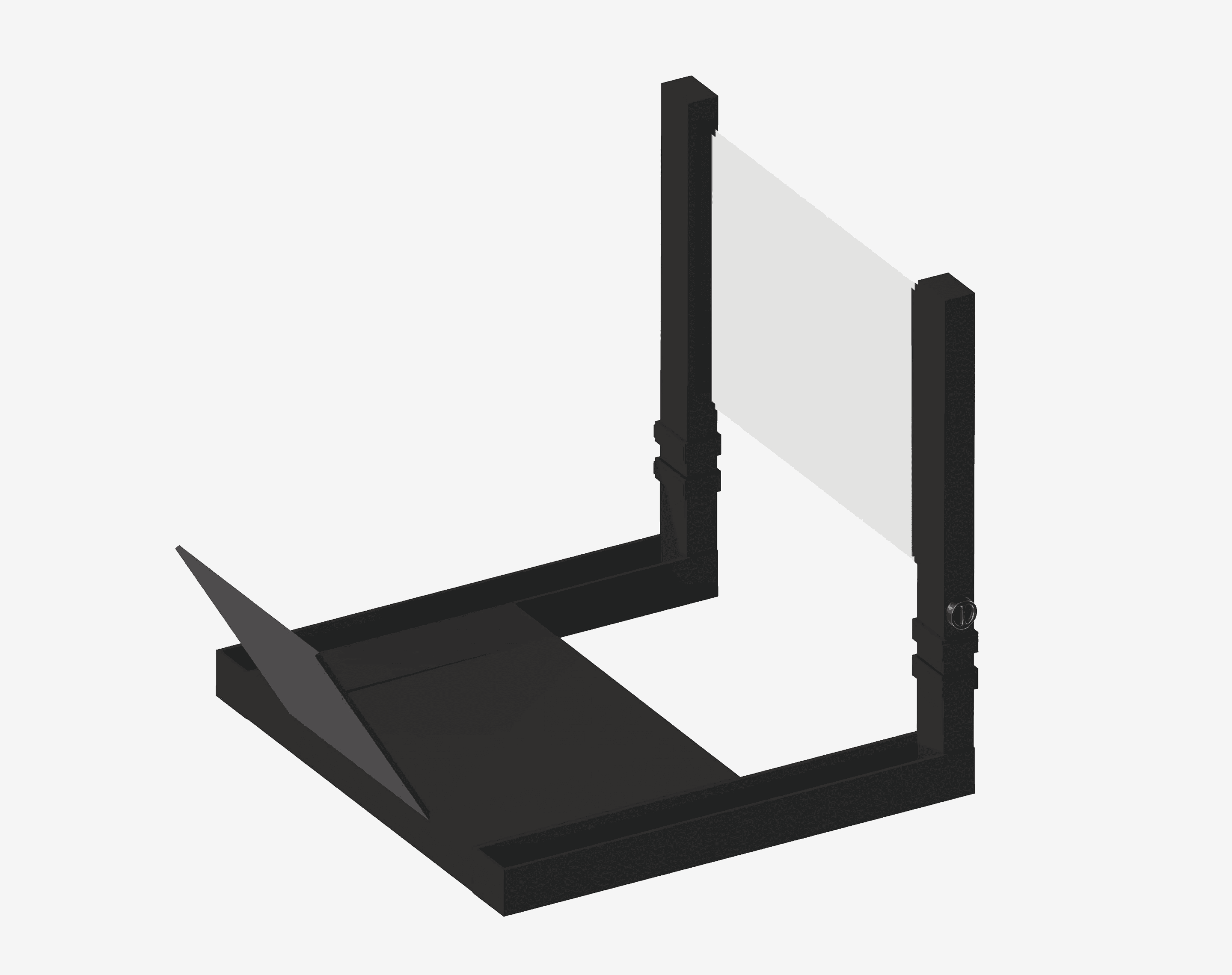 TableKast can be separated by detaching the front mount that holds the convex glass from the main base, transforming it into a kickstand that allows the device to stand independently for larger devices.