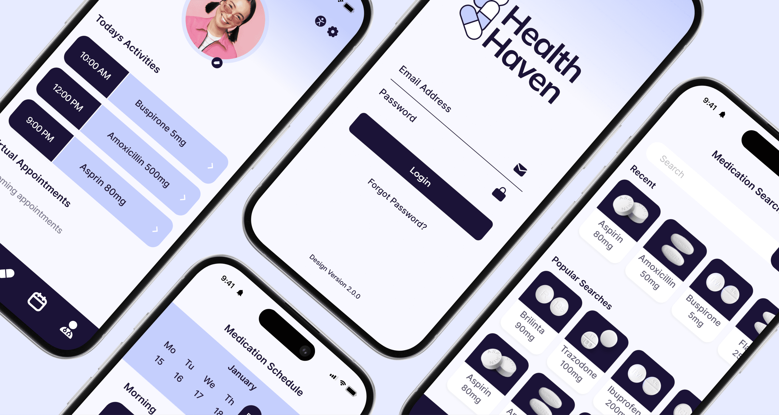 Case studies for HealthHaven and Mindful coming soon, access the interactive prototypes below.